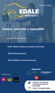 « Todos los Eventos Casco, cuartilla y menudillo – 19 de Marzo marzo 19 @ 4:30 pm - 8:00 pm « WEBINAR – RADIOLOGIA DEL TARSO: ABORDAJE DE LA VISTA LM Casco, cuartilla y menudillo – 20 de Marzo » Inscríbete en: https://forms.gle/5xbJJvmvTF5kfC8x6 Añadir al calendario Google Calendar iCalendar Outlook 365 Outlook Live Detalles Fecha: marzo 19 Hora: 4:30 pm - 8:00 pm Web: https://forms.gle/5xbJJvmvTF5kfC8x6 Organizador Biovetacademy Local Hospital Veterinario Universidad europea de madrid Hospital veterinario universidad europea de madrid madrid, Spain + Google Map